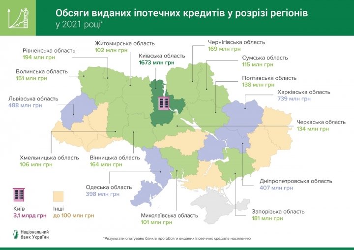 Как говорят данные НБУ, средний размер ипотечного кредита на покупку первичной недвижимости в 2021 году составил 893 тыс. грн, вторичной — 809 тыс. грн.