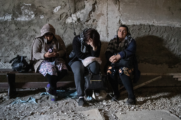 Жительницы города Шуша в подвале во время воздушной тревогиЖительницы города Шуша в подвале во время воздушной тревоги