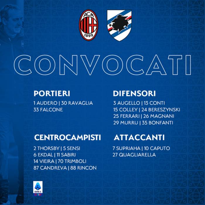 Главный тренер генуэзского клуба Марко Джампаоло огласил заявку команды на матч.