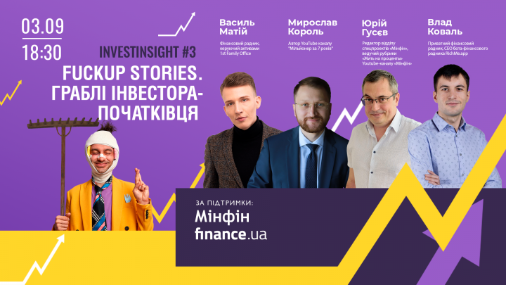 Инвестиции это всегда риск. Ошибаются даже опытные инвестора, тогда что говорить о новичках в этой области. Но есть типичные ошибки, на которые почти всегда наступают люди без опыта инвестирования и которые очевидны для бывалых инвесторов. На третьей живой встречи InvestInsight 3 – “Грабли начинающего инвестора”, организатором которой является сайты о финансах и инвестициях Minfin.com.ua и Finance.ua, поговорим об этой неочевидной, казалось бы, очевидности. Откроем глаза и научимся правильно выбирать инвестиционные инструменты и хеджировать риски.