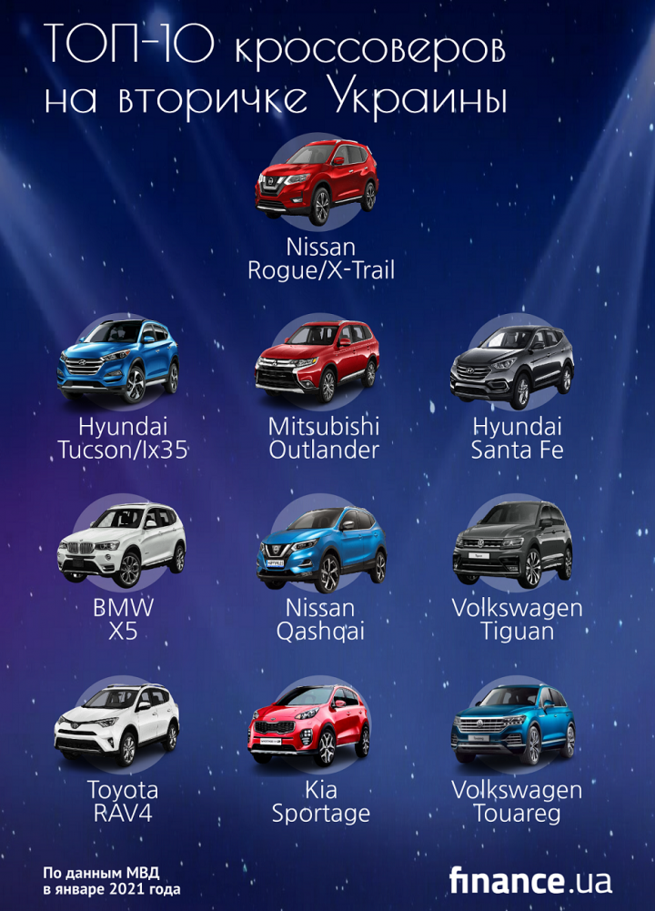 ТОП-20 популярных кроссоверов и SUV в Украине начала 2021 года: