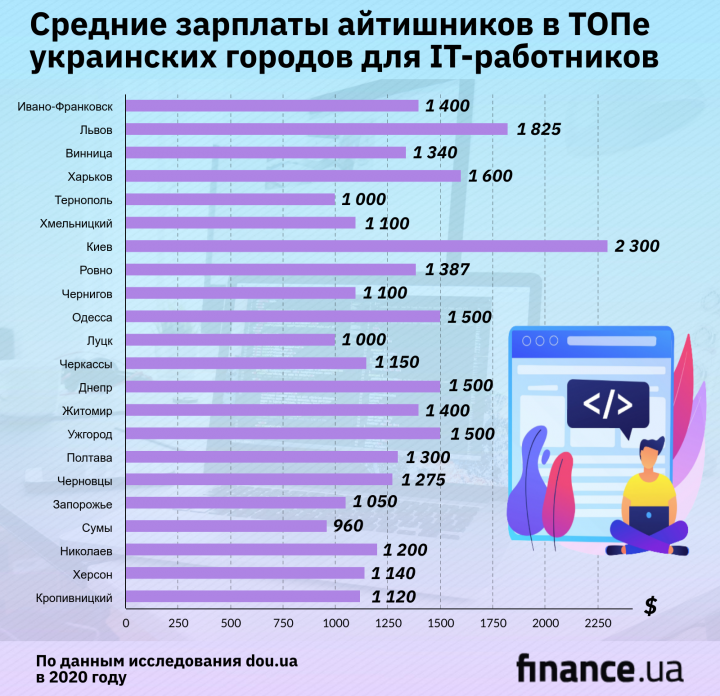 ТОП-5 городов Украины для ІТ-специалистов (инфографика) / Новости / Finance.ua