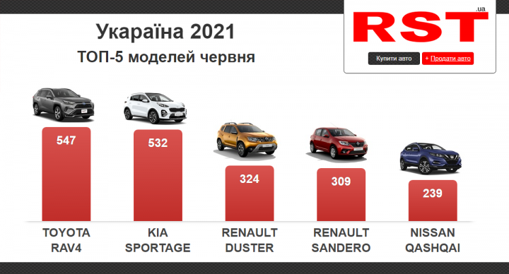 ТОП-5 новых авто, которые покупали украинцы в июне (инфографика)