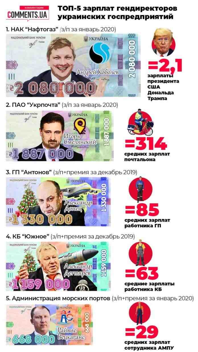 ТОП-5 зарплат гендиректоров украинских государственных предприятий (инфографика)