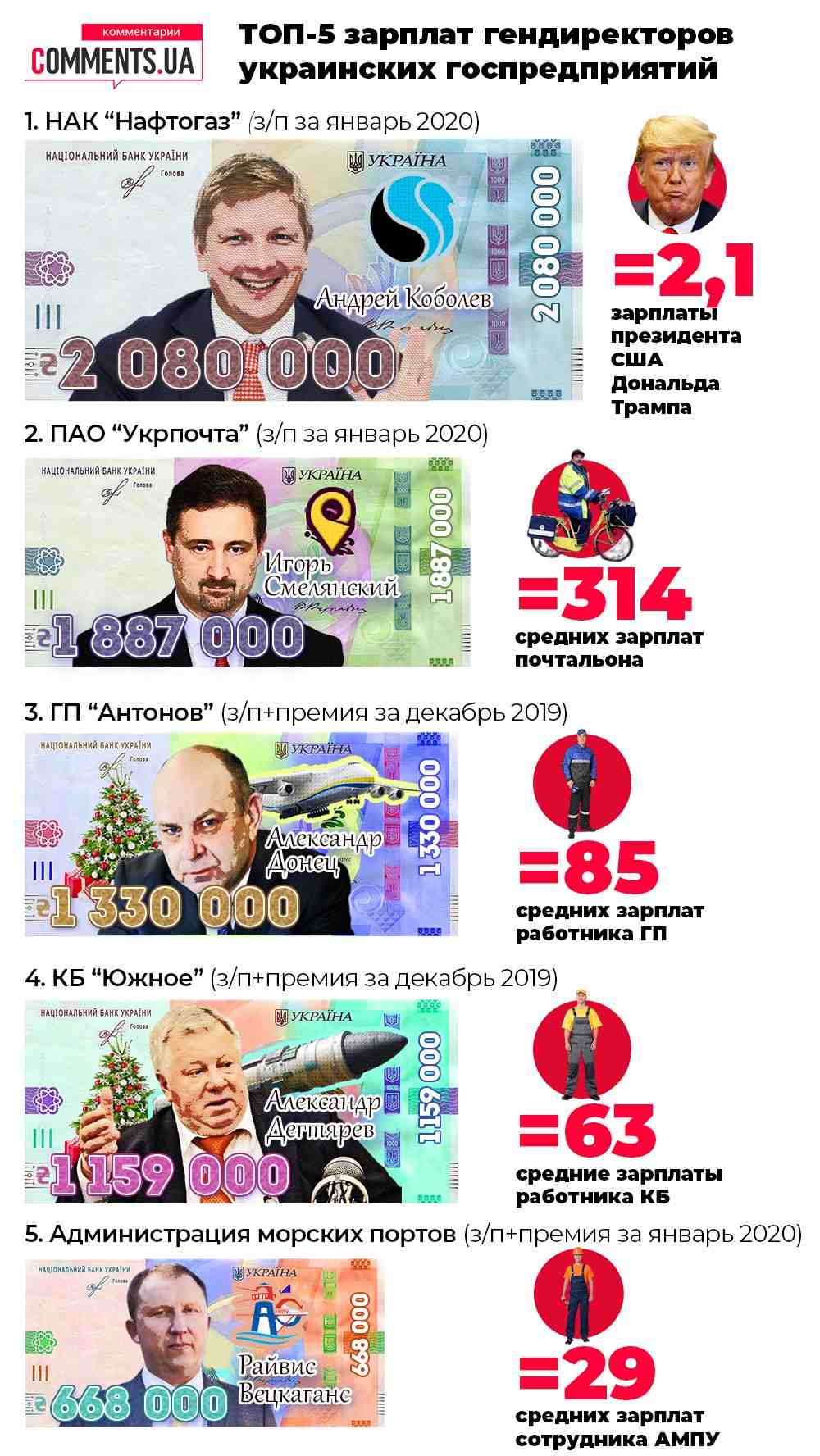 ТОП-5 зарплат гендиректоров украинских государственных предприятий (инфографика) / Новости / Finance.ua