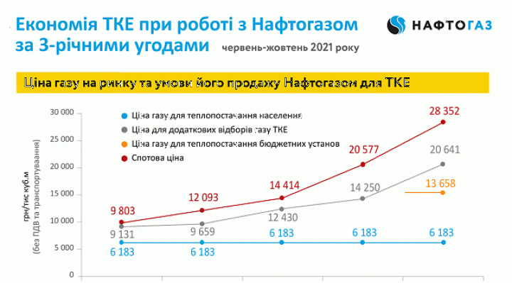 Со ссылкой на экспертные расчеты Нафтогаз отмечает, что в случае отсутствия фиксированной цены тарифы на тепло пришлось бы поднять только из-за подорожания топлива примерно в 1,5 раза.