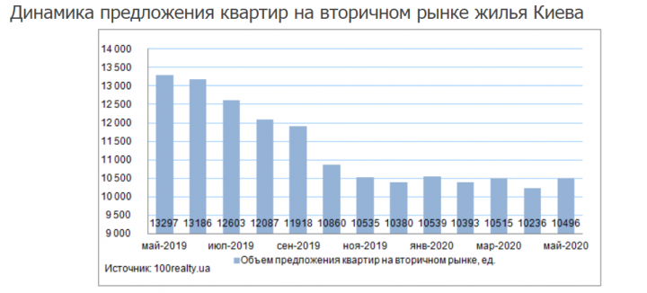 Общая ситуация на вторичном рынке жилья в Киеве. Количество представленных к продаже квартир в Киеве в мае увеличилось на 2,5% относительно апреля и составило 10496 квартир. Объем предложения повысился в общей площади на 2%, в долларовом выражении – на 0,4%.