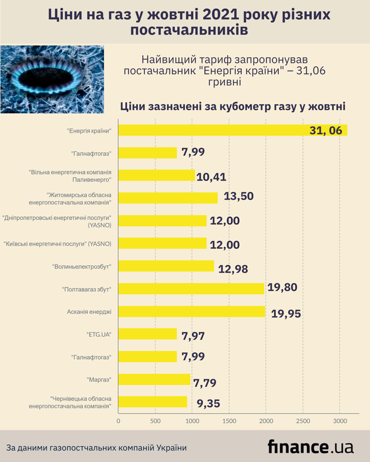 Цена на газ в октябре у разных поставщиков (инфографика) / Новости / Finance.ua