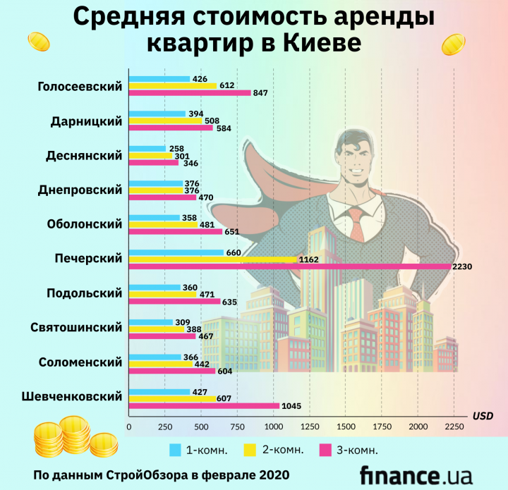 Цены на аренду квартир в Киеве (инфографика)