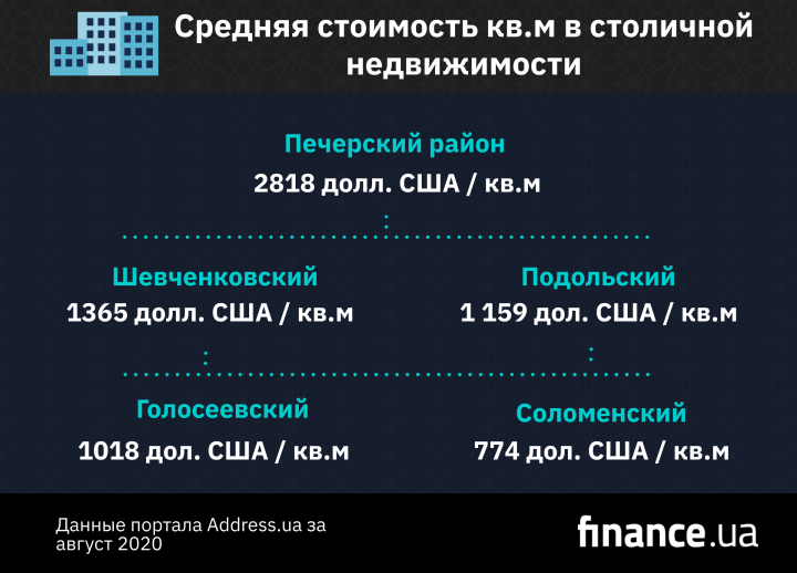 В августе 2020 г. медианная цена квадратного метра жилой недвижимости на первичном рынке столицы составляла 1151 долл. США/кв.м;