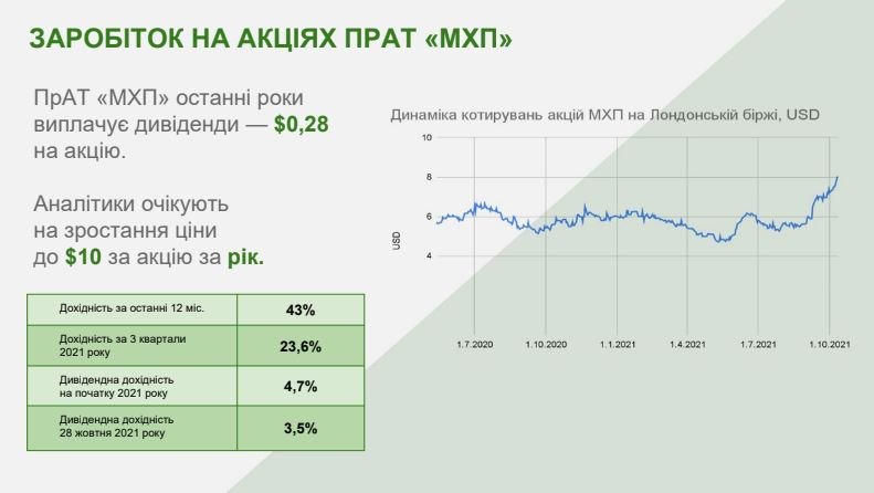 В 2021 году МХП получил рекордную прибыль за все время. Он заработал за полгода $250 млн и акции сразу возросли с 5 до 8 долл.