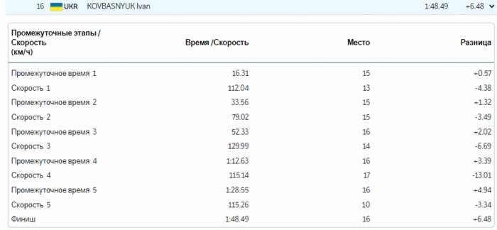 Украинский спортсмен Иван Ковбаснюк провел свой скоростной спуск в рамках тренировки и показал 16-й результат из 19-ти спортсменов, которые вышли на старт.