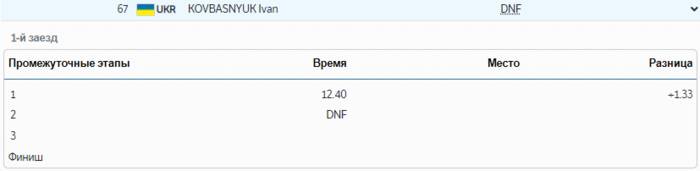 К сожалению, 28-летний украинец не сумел финишировать в первом заезде, и, таким образом, он выбыл из борьбы за медали (в слаломе победитель определяется по сумме времени за два заезда).
