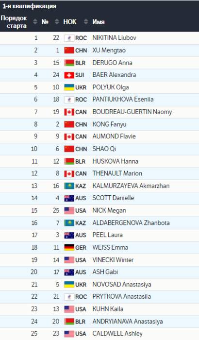Отметим, что по итогам первой квалификации шесть лучших спортсменок проходят в первый финал, а остальные продолжат соревноваться во второй квалификации.