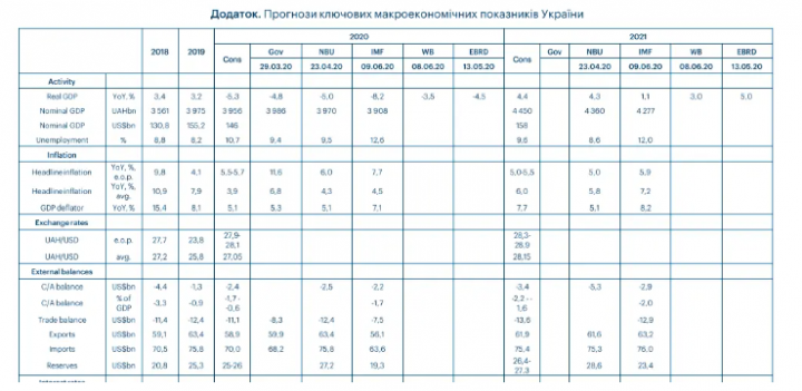 В 2020 году падение ВВП в Украине может составить 5,3%, инфляция ускорится до 5,5% -5,7% в годовом измерении, курс гривны к доллару США составит 27,9-28,1 грн/$.