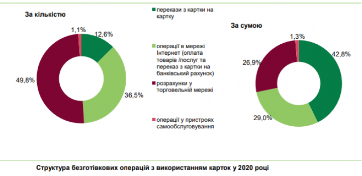 В Украине в течение 2020 года продолжали увеличиваться безналичные платежи с использованием платежных карт. При этом количество бесконтактных оплат и операций с использованием NFC-технологии почти удвоилось в торговой сети.