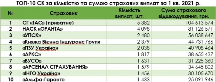По данным МТСБУ, при этом сумма страховых платежей составляет 1,5 млрд грн, что на 13% больше показателя I квартала 2020 года.