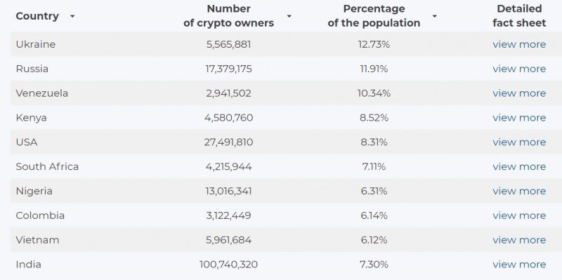 По итогам прошлого года почти 13% украинцев владели той или иной криптовалютой. По этому показателю Украина даже опережает США и Россию.