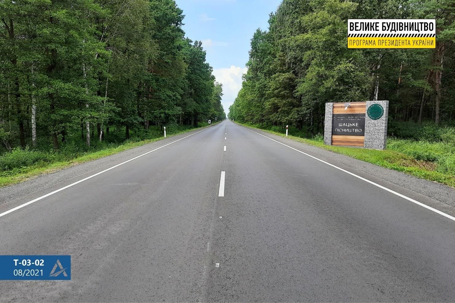 Дорожники полностью восстановили 26 км трассы Т-03−02 Пища — Шацк — Любомль — Владимир-Волынский — Павловка — Горохов — Берестечко — Козин — /М-06/ от села Пища в село Положево, а также дорогу Т-03−06 /Т-03−02/ – Шацк — Волица — Припять — Любохины — /Т-03−08/ от поселка Шацк в село Любохины на всей протяженности — 22,5 км.
