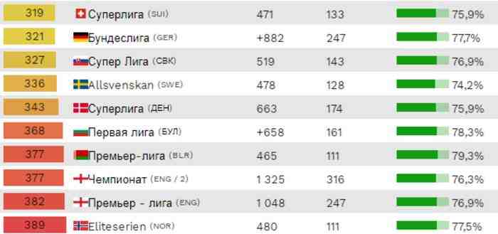 На другой стороне рейтинга чемпионат Норвегии и АПЛ.