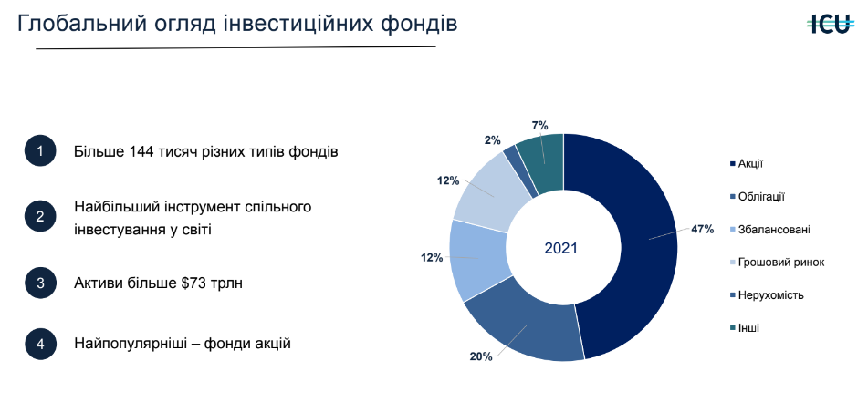 Сейчас существует более 150 тыс. инвестиционных фондов на любой вкус: золото, облигации, акции и тому подобное. Общая стоимость активов, если еще добавить пенсионные фонды, будет составлять более 100 триллионов, это в 5 раз больше, чем ВВП США и мировой ВВП.