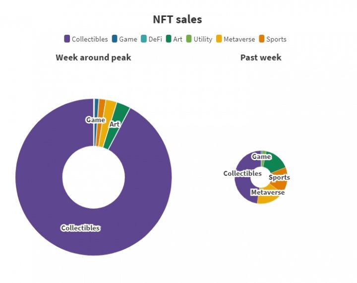Самыми популярными NFT для приобретения остаются коллекционные предметы, их за неделю продали на $9,2 млн (почти 50% от всех продаж). Зато в отдельных категориях почти вообще ничего не продается.