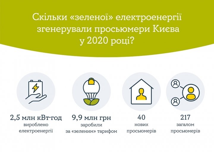 За прошлый год владельцы частных солнечных электростанций в столице произвели 2,5 млн кВт·ч энергии и заработали по «зеленому» тарифу 9,9 млн грн.