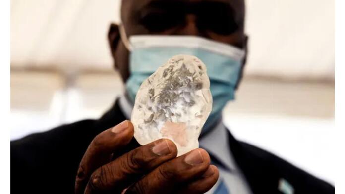 В Ботсване показали алмаз, предварительно считающийся третьим крупнейшим в мире среди когда-либо найденных. Камень в 1098 карат лишь немного уступает в размерах второму по величине алмазу в мире — Леседи ла Рона, весом в 1111 карат, тоже найденному в Ботсване в 2015 году.