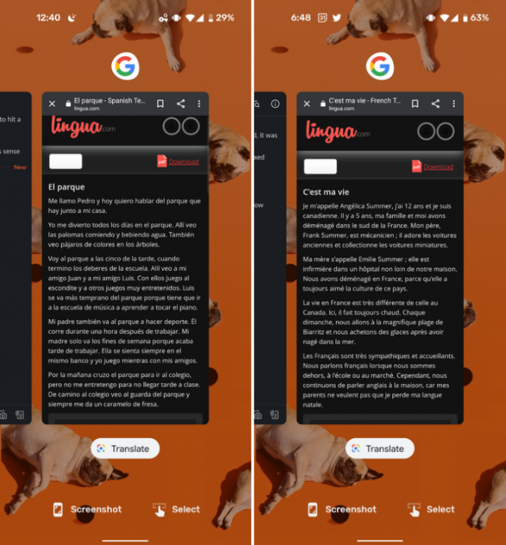 Специалисты с ресурса AndroidPolice смогли найти новую функцию в прошивке Android 12 Developer Preview 2.1 и поделились скриншотами, демонстрирующими перевод в работе. Так, если на экране смартфона появится информация на иностранном языке, перевести её можно будет одним нажатием.