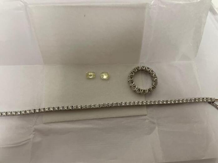 В разных местах ручной клади гражданина Израиля 1962 года рождения правоохранители обнаружили браслет из белого золота и кольцо, украшенные бриллиантами, а также два бриллианта желтого цвета с сертификатами «GIA» общим весом 2.21 карат.