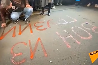 Также канал опубликовал видео, на котором мужчина написал красной краской на асфальте возле здания отеля: «Вон из Грузии». В том числе участники акции выкрикивали нецензурные выражения в адрес России.