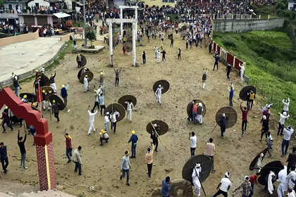 По информации издания, речь идет о фестивале Bagwal, который проходит на территории храма Девидхура в индийском штате Уттаракханд в честь дня полнолуния. В ходе празднества люди добровольно закидывают друг друга камнями, чтобы задобрить правящее божество пролитой кровью. В этом году после мероприятия 75 человек обратились за медицинской помощью.