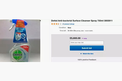 В интернет-магазине Ebay принялись вести торговлю дезинфицирующим спреем Dettol ценой в полмиллиона рублей. На это же направили внимание в The Sun.