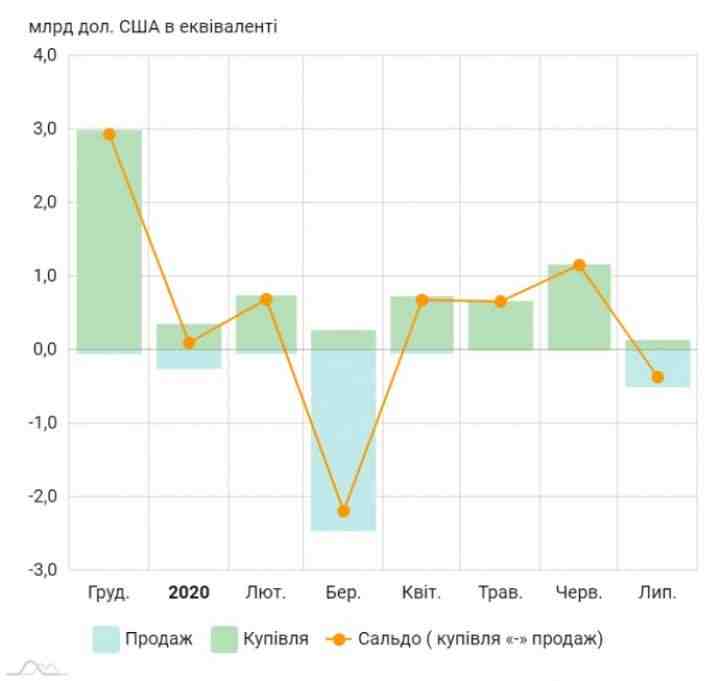 Для сравнения, в июне Нацбанк только покупал валюту (общей суммой на 1,115 миллиарда долларов).