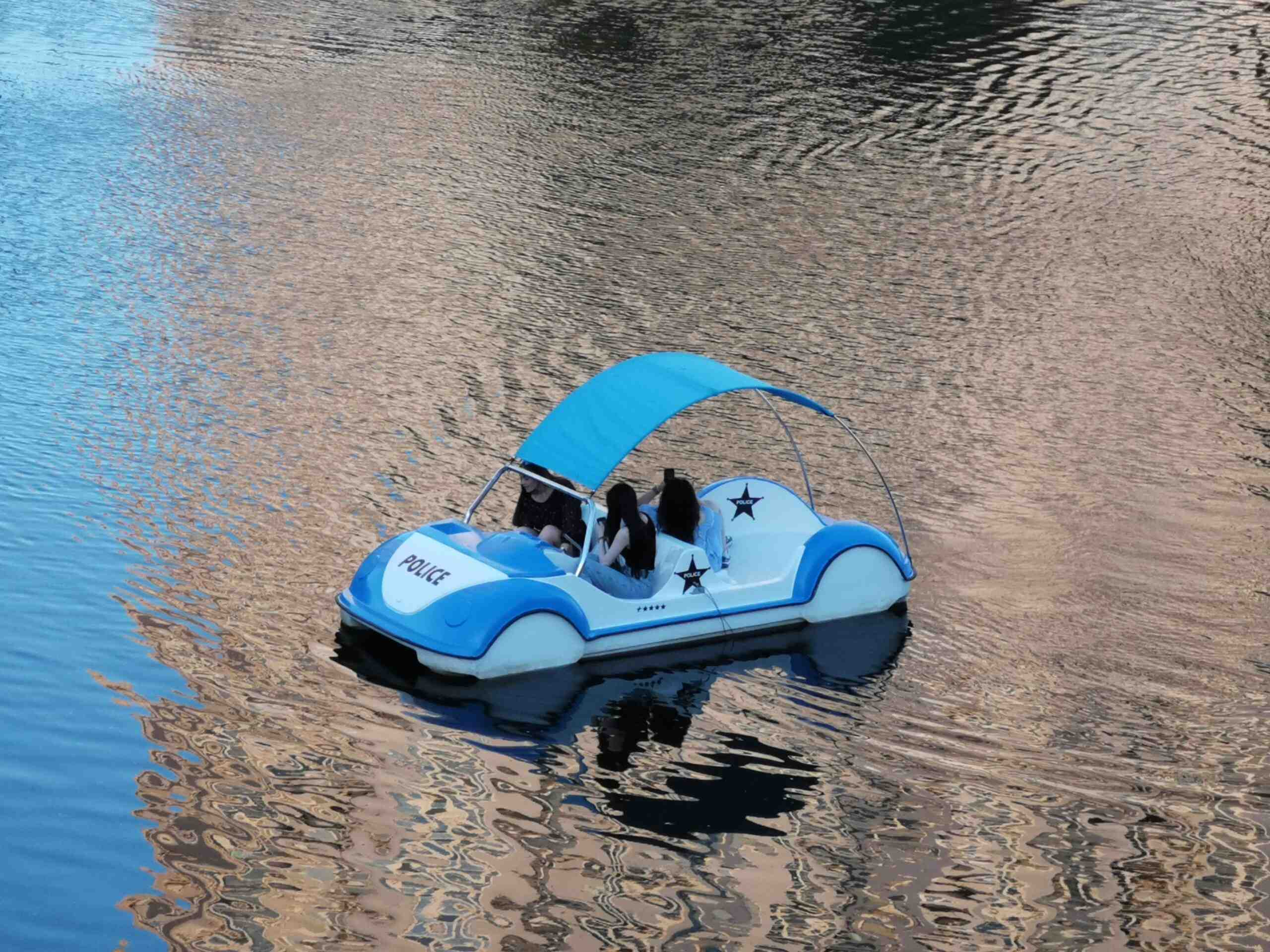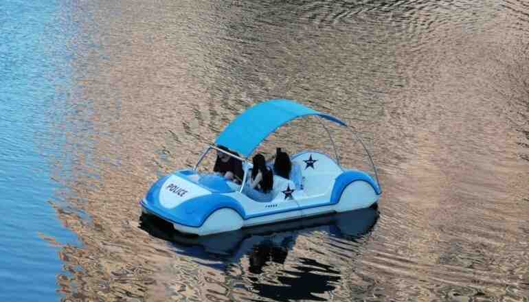 Плавающий «народный автомобиль» довольно практичный: у него два места спереди, на которых установлены педали, а также еще два места сзади, где отдыхающие сидят спиной к движению. Очень удобно, что катамараны имеют тканевую крышу, отлично защищающую от солнца и от кратковременного дождика. Интересно, что она на полукруглом каркасе – в духе характерного дизайна Beetle.