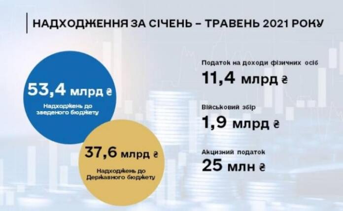 В январе-мае 2021 года налогоплательщики г. Киева уплатили в бюджеты всех уровней 53 млрд 400 млн грн, что на 4 млрд 148 млн грн, или на 8% превышает прошлогодние поступления за аналогичный период.