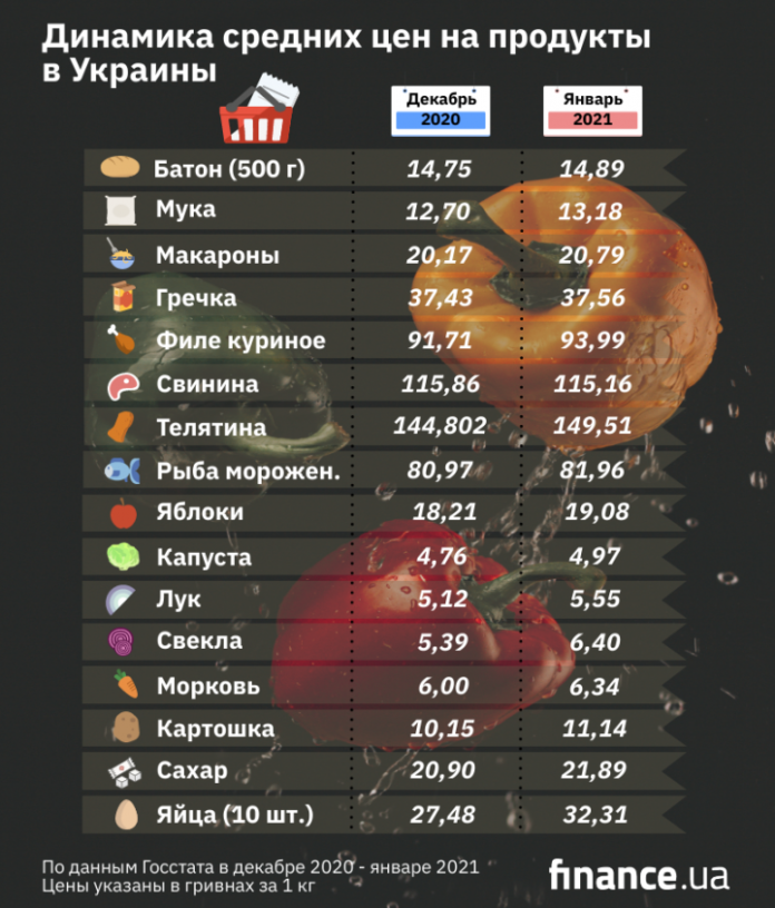 В начале 2021 года в Украине выросли цены почти на все продукты (инфографика)