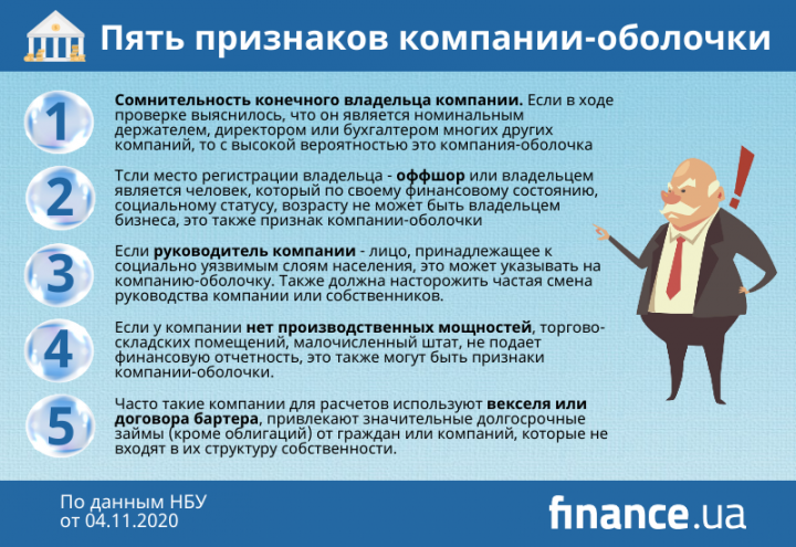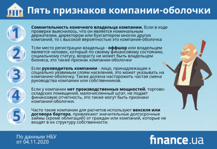 В Нацбанке рассказали, как банкам выявить компанию-оболочку (инфографика)