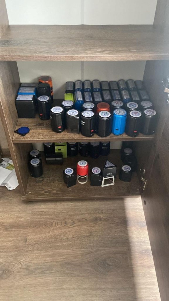 В результате обысков в помещениях типографии и по месту проживания участников группы правоохранители изъяли компьютерную и оргтехнику, более 70 печатей и штампов медицинских учреждений, бланки строгой отчетности медицинских учреждений, а также около 500 тыс. грн и 12 тыс. долларов.