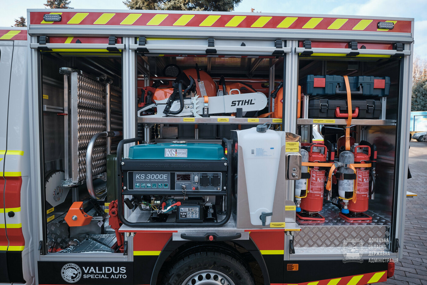 Еще один автомобиль производства «Валидус Спецавто» был передан государственному пожарно-спасательному отряду в город Бахмут. В отличие от двух предыдущих автомобилей, это уже аварийно-спасательная машина среднего типа (САРМ-С) и выполнена на шасси развозной модели MAN TGE с двухрядной кабиной.
