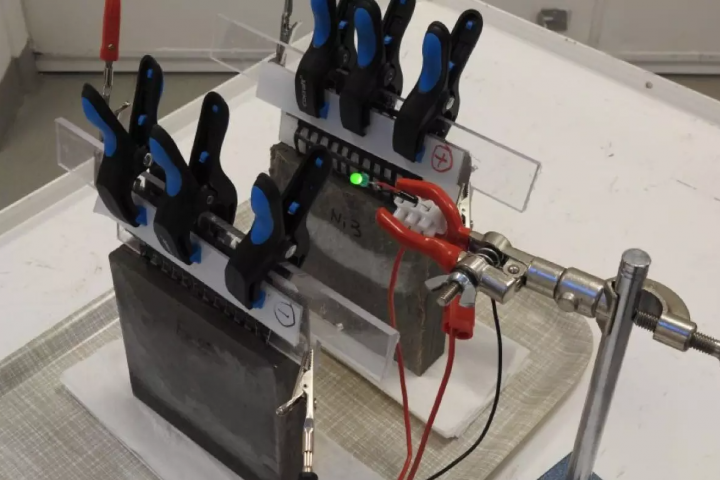 Новая концепция включает смесь на основе цемента с добавлением небольшого количества коротких углеродных волокон для увеличения проводимости и прочности. В эту смесь ученые интегрировали сетку, сделанную из углеродного волокна с металлическим покрытием, — железо для анода и никель для катода.