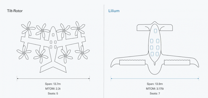 Но разработчики утверждают, что у их модели есть свои особенности: благодаря такому количеству двигателей, аэротакси может подниматься вертикально большую часть времени. Громкость моторов Lilium — 10 дБ, а в крейсерском полете его вообще практически неслышно.