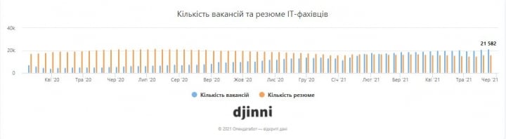 По данным сайта по поиску работы для ІТ-специалистов Djinni, сейчас в Украине ищут работу 16 тысяч специалистов, в то время как актуальных вакансий — 21 тысяча. Дефицит составляет 5 тыс. работников.