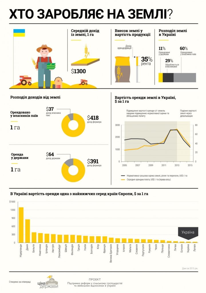 В Украине существует достаточно небольшое число хозяйств, обрабатываемых владельцами, поскольку владельцам не хватает доступа к капиталу, способности обрабатывать землю (около 50% владельцев — пожилого возраста) или они работают в других секторах экономики.