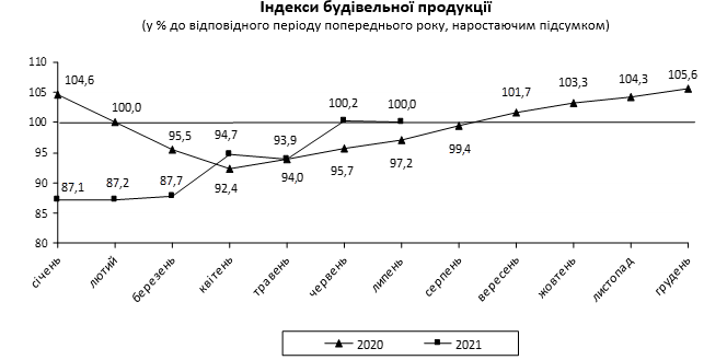 Объем произведенной строительной продукции (выполненных строительных работ) предприятиями Украины в январе-июле 2021 года составил 97,4 млрд гривен.