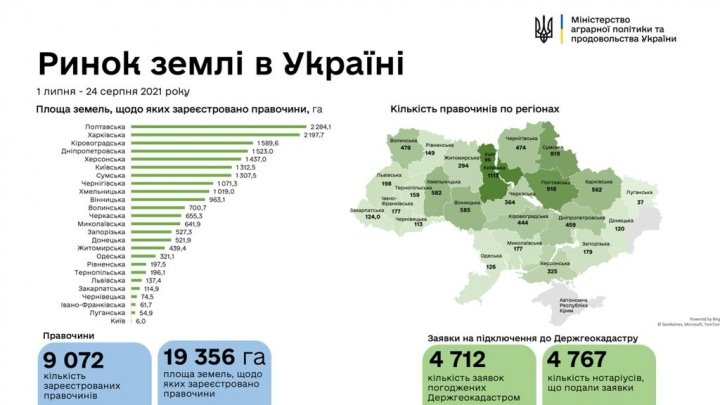 После разрешения на продажу земель сельскохозяйственного назначения в Украине уже заключены 9072 земельные сделки. По состоянию на 25 августа площадь проданных земель составляет 19 356 га.