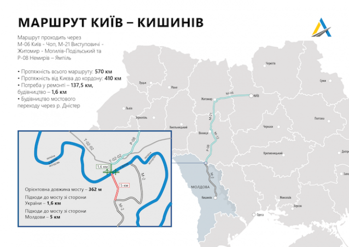 Обновленный маршрут будет проходить через Киевскую, Житомирскую и Винницкую области, и станет оптимальным для путешествия в Молдову в объезд Приднестровья.