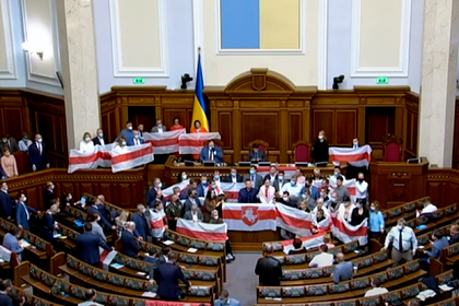 Вместе с тем депутат от фракции «Оппозиционная платформа — За жизнь» Илья Кива вывесил на балконе Рады красно-зеленый государственный флаг Белоруссии. На кадрах он висит в перевернутом виде.