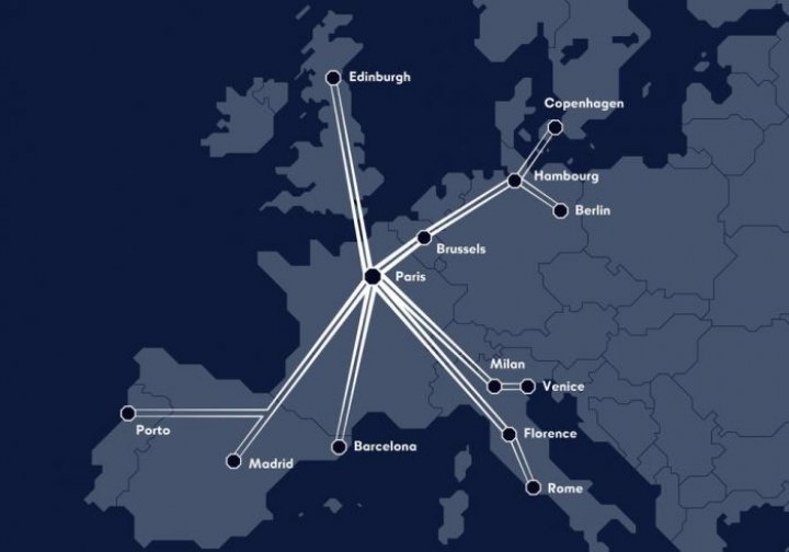 Центром предполагаемой сети станет Париж. Оттуда маршруты должны будут пролегать в Мадрид, Лиссабон, Порту, Милан, Венецию, Флоренцию, Рим, Вену, Прагу, Будапешт, Берлин, Гамбург, Копенгаген и Эдинбург.