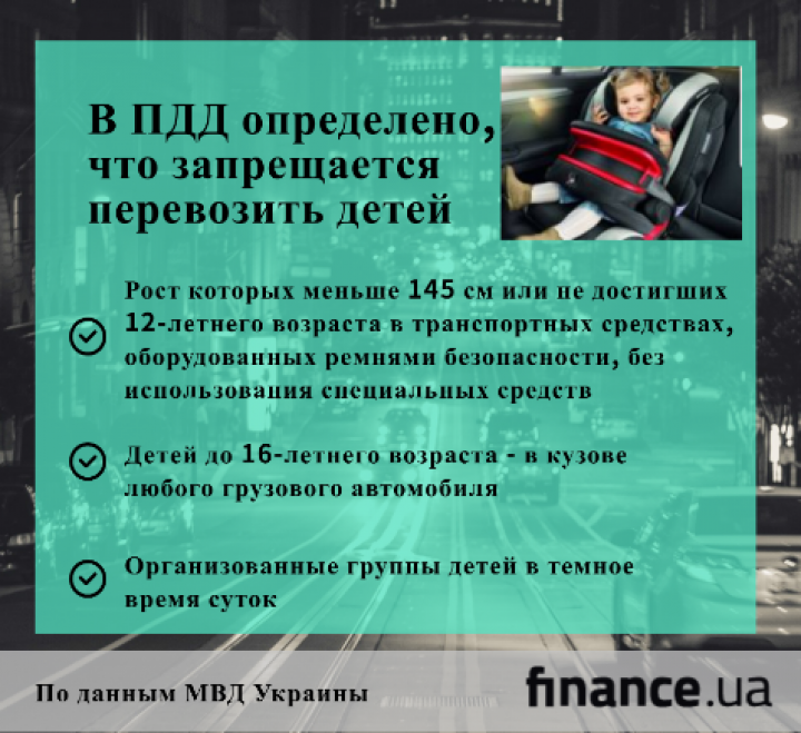 Верховная Рада приняла закон №1150 “О внесении изменений в Кодекс Украины об административных правонарушениях относительно установления ответственности за нарушение правил перевозки детей”. В ПДД определено, что запрещается перевозить: детей, рост которых меньше 145 см или не достигших 12-летнего возраста.